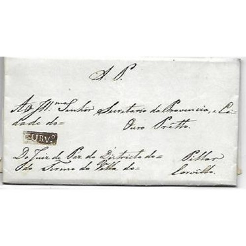 • 1837-Carta de serviço publico  circulada de Curvelo para Ouro Preto, cbo de saída "Curv."  em negativo.Rara.