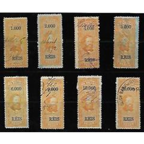 Laux-025a-26a-28a-29a-30a-33a-34a-44a- 8 selos serie c/ ponto nos algarismos, papel azulado