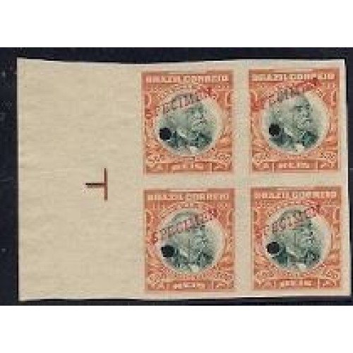 Etiquetas: O-08 Spm-500Rs Afonso Pena, em quadra sem denteação com sobrecarga Specimen