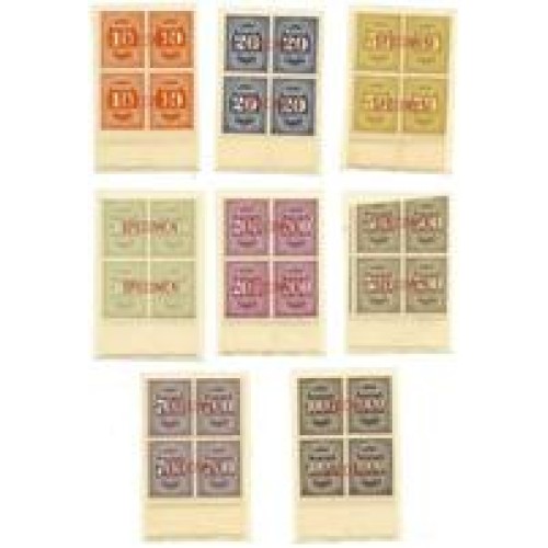 • X-10/17 spm-Serie de taxas colorida de 1890 com sobrecarga Specimen.Selo de 500Rs com deslocamento do percê.