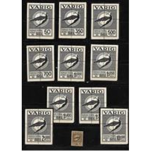 • V-17/25-Serie Icaro em provas  de gravura em preto tamanho 49 X 64 mm, Acompanha a imagem de um selo para comparação das dimensões.